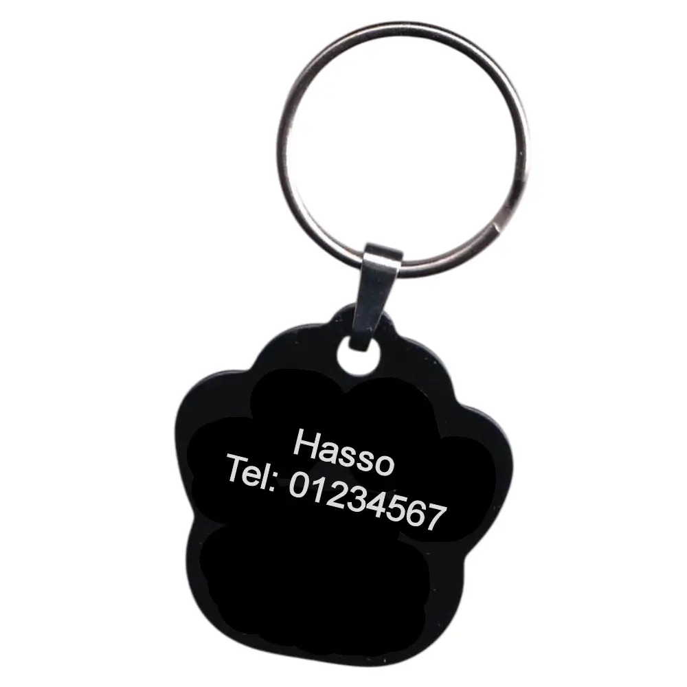Mit der Alu Hundemarke mit Gravur in Pfotenform schwarz kombinierst du elegantes Design mit hohem Nutzen. Die pfotenförmige Tiermarke ist nicht nur ein niedlicher Hingucker, sondern bietet auch Sicherheit im Alltag: Dank der individuellen Gravur sind die wichtigsten Daten deines Vierbeiners immer sofort verfügbar. So kann dein Liebling im Notfall schnell zu dir zurückfinden.
