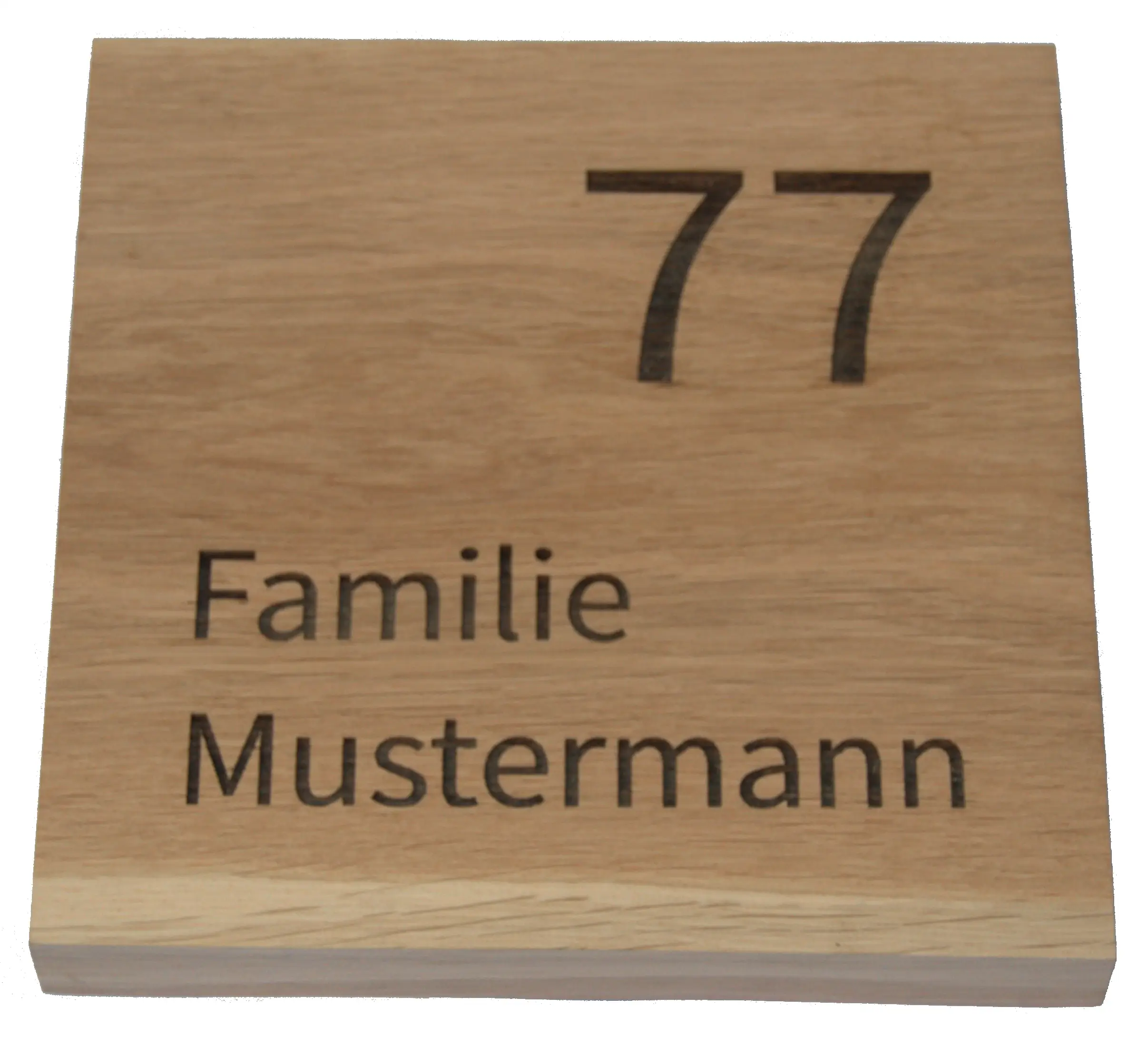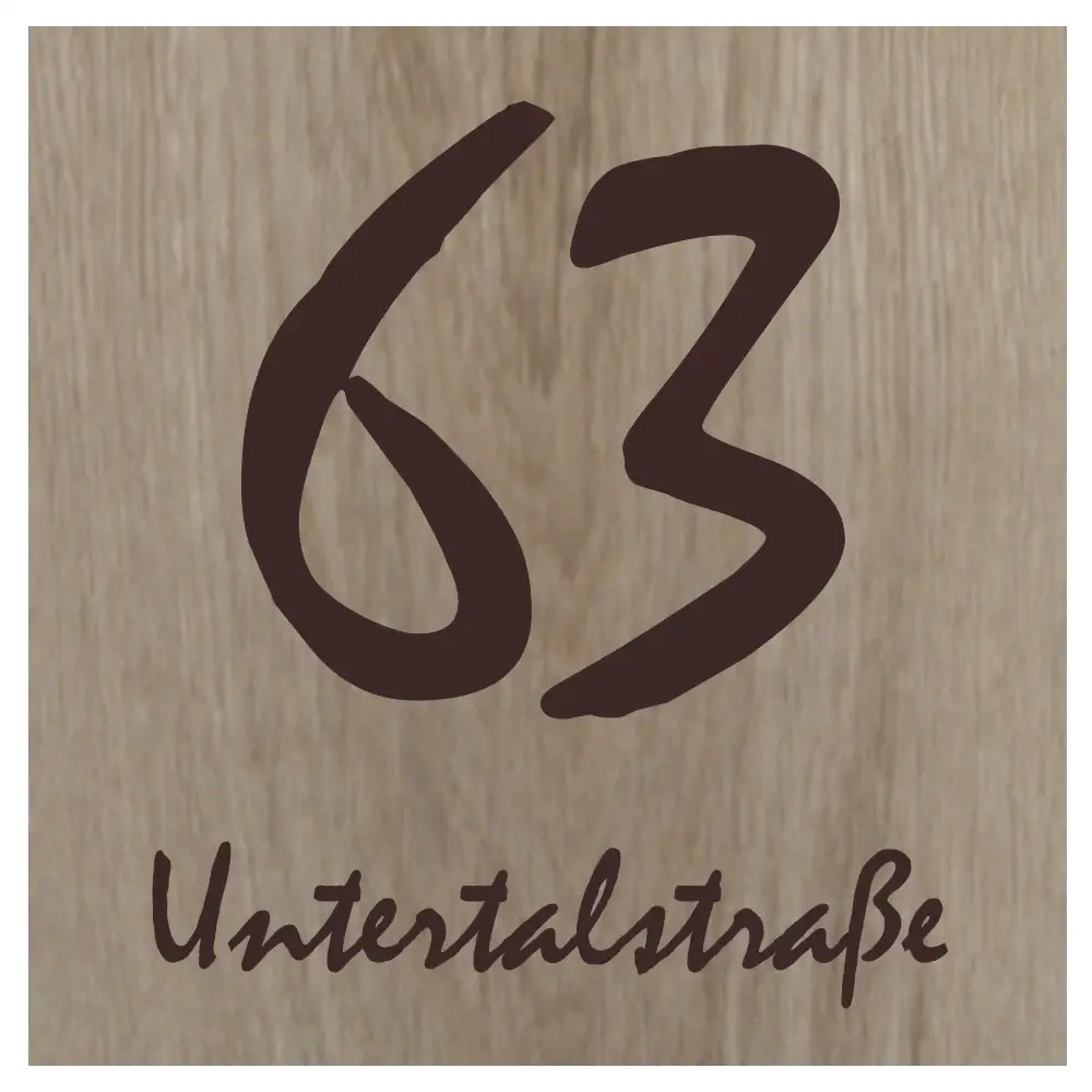 Das Hausnummernschild aus Eichenholz wird aus massiver Eiche gefertigt und überzeugt durch seine markante Maserung und den warmen Farbton des Holzes. Die Laser-Tiefengravur mit einer Gravurtiefe von ca. 0,5–1,5 mm sorgt für eine dauerhafte, gut lesbare Kennzeichnung, deren Gravurfarbe je nach Holzstruktur von braun bis dunkelbraun variiert. Für den witterungsgeschützten Außenbereich konzipiert, eignet sich dieses Schild ideal für überdachte Eingangsbereiche, Vordächer oder geschützte Hauswände.