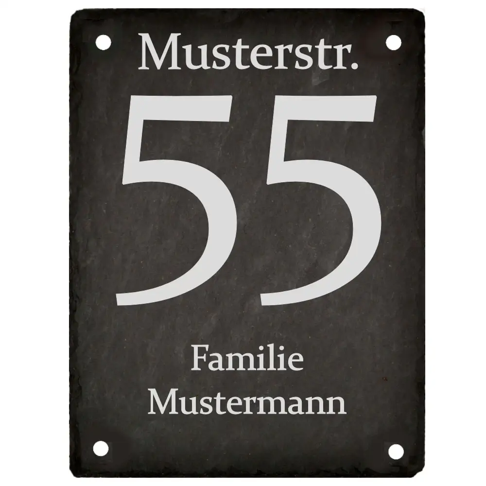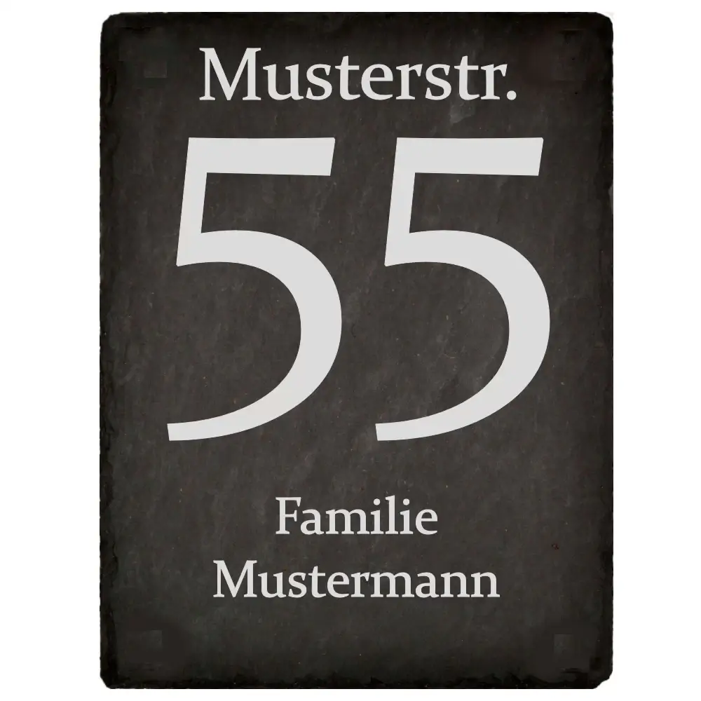 Unsere Schiefer Hausnummernschilder werden individuell nach Ihren Angaben gefertigt und bringen einen Hauch von Exklusivität an Ihre Hauswand. Ob modern oder klassisch – das dezente Anthrazit fügt sich harmonisch in jedes architektonische Umfeld ein.