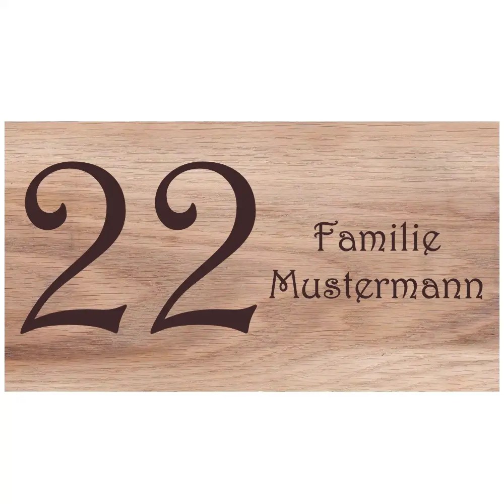 Gestalten Sie Ihr persönliches Hausnummernschild aus Eichenholz jetzt ganz einfach online. Mit seiner natürlichen Holzstruktur und präzisen Gravur wird es zum stilvollen Blickfang an jedem Zuhause – handgefertigt, individuell und einzigartig.