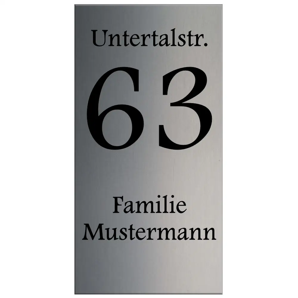 Gestalten Sie Ihr Hausnummernschild mit Straßennamen ganz nach Ihren Vorstellungen. Ob nur die Hausnummer, zusätzlich der Straßenname oder sogar ein Familienname – jede Gravur wird exakt nach Ihren Wünschen umgesetzt. Damit verleihen Sie Ihrem Eingangsbereich eine persönliche Note und zugleich ein hochwertiges Erscheinungsbild.