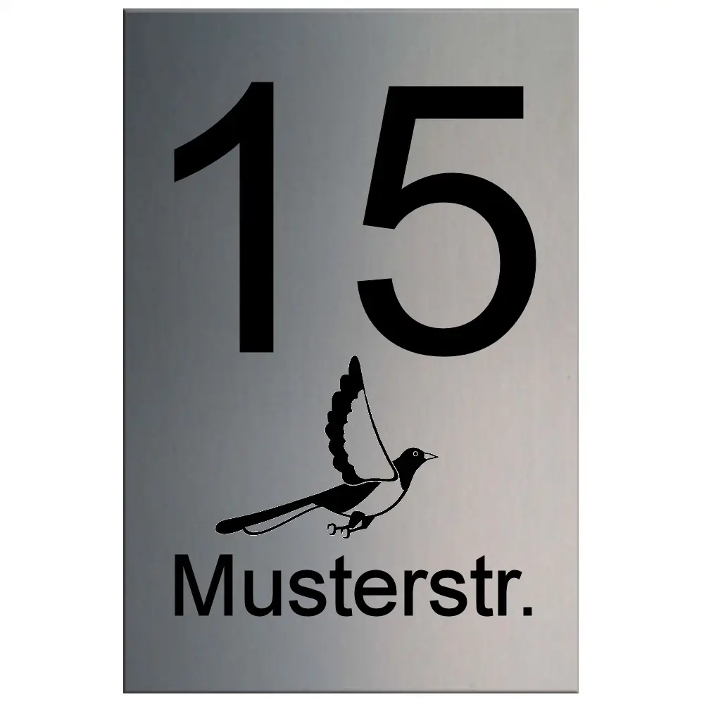 Dieses moderne Hausnummernschild aus Edelstahl mit Gravur vereint zeitloses Design, hohe Materialqualität und präzise Verarbeitung. Mit seinen kompakten Maßen von 80×120 mm und einer Materialstärke von 1,5 mm fügt es sich harmonisch in jede Hausfassade ein – modern, elegant und langlebig zugleich. Die gebürstete bzw. satinierte Edelstahloberfläche (wahlweise vertikal oder horizontal) verleiht dem Schild eine edle, matte Struktur, die das Gesamtbild Ihres Eingangs stilvoll abrundet.